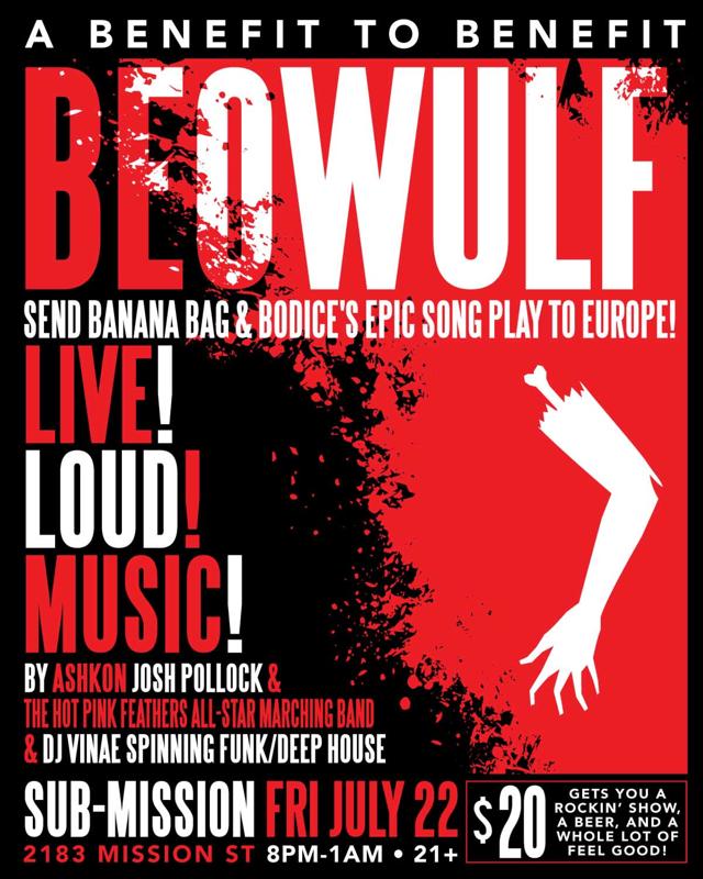 Former San Francisco, now NYC-based theater troupe Banana Bag & Bodice have made Olde English Newe again, with a very modern interpretation of the epic poem Beowulf as a staged “SongPlay” complete with 7-piece onstage band. Next month they bring it all back home, taking their award-winning adaptation Beowulf – A Thousand Years of Baggage across the pond to Eurpoe for performances at the Kilkenny Arts Festival and the Edinburgh Fringe Festival. It’s a big leap for a small theater company, but the show’s success has gotten ever more epic (heh.) each year since it was first performed.