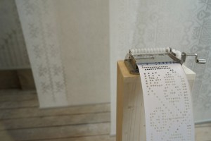 A very patient yellow Lab sits very still as he allows a remote-controlled helicopter to take off from a bullseye landing pad tied to the top of his head. Good doggie.