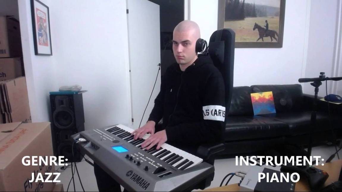Musician in a Striped Sweater Plays the Oasis Song ‘Wonderwall’ in a Variety of Styles on his SynthesizerJanuary 2, 2018