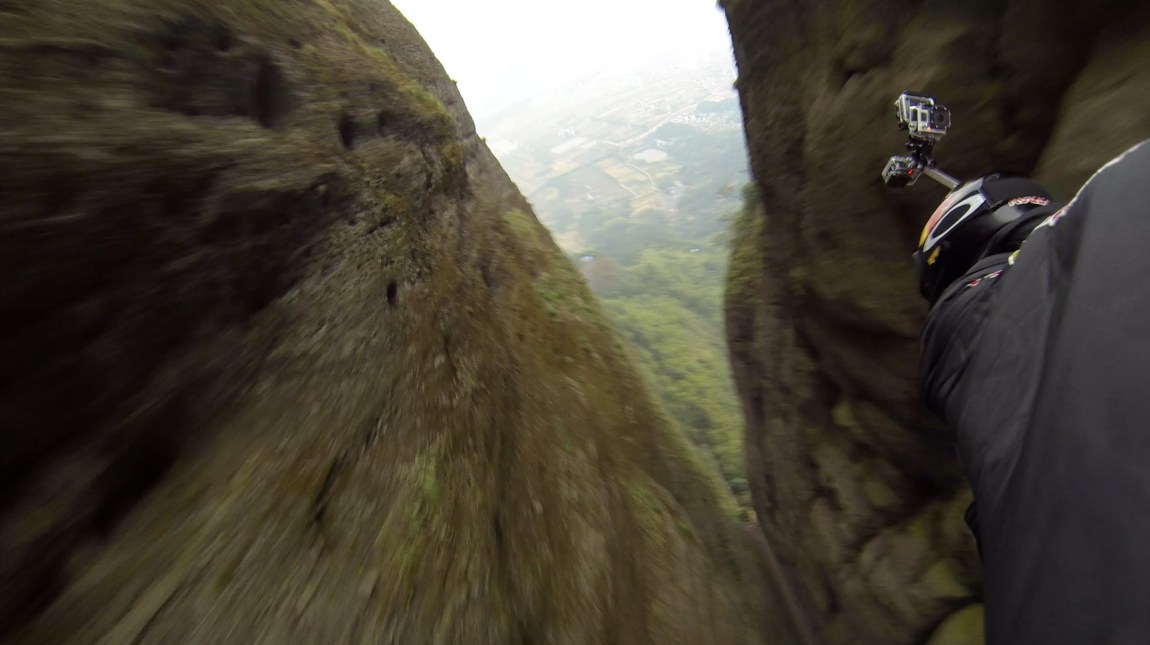 Wingsuit Pilot Jeb Corliss Flies Through a Narrow Crack in a Mountain in China