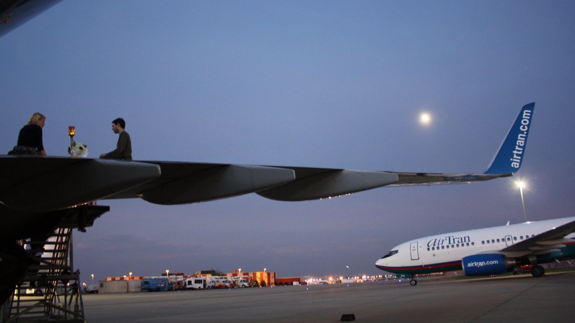 Comedian Mark Malkoff and His Wife Celebrate Their Wedding Anniversary with Dinner on Wing of AirplaneJuly 8, 2014